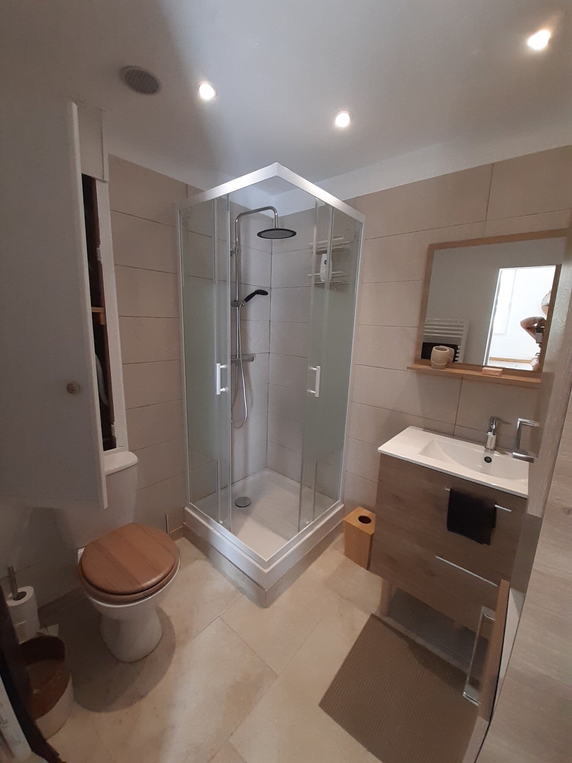 Découvrez notre salle de bain indépendante, entièrement équipée pour répondre à tous vos besoins. Cette espace moderne comprend une douche spacieuse, des WC pour votre confort, ainsi qu'un lavabo fonctionnel, idéal pour votre routine quotidienne. Vous n'aurez pas à vous soucier des petites détails, car des serviettes douces et propres sont fournies pour votre commodité. Profitez d'un moment de détente et de bien-être dans cet espace conçu spécialement pour vous.